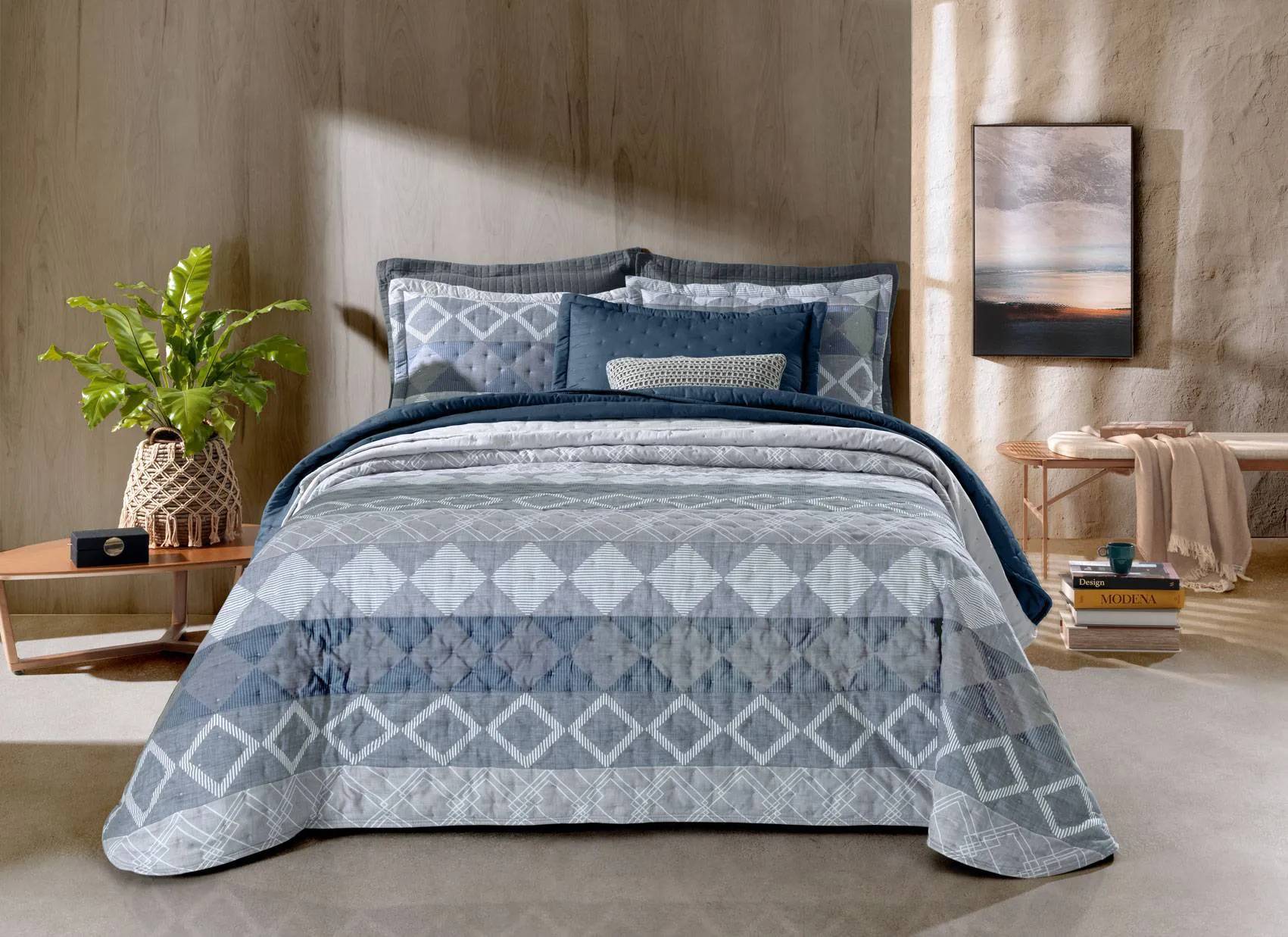 cobre leito confeccionado em tecido suave com toque de algodão em 250 fios. A moderna técnica