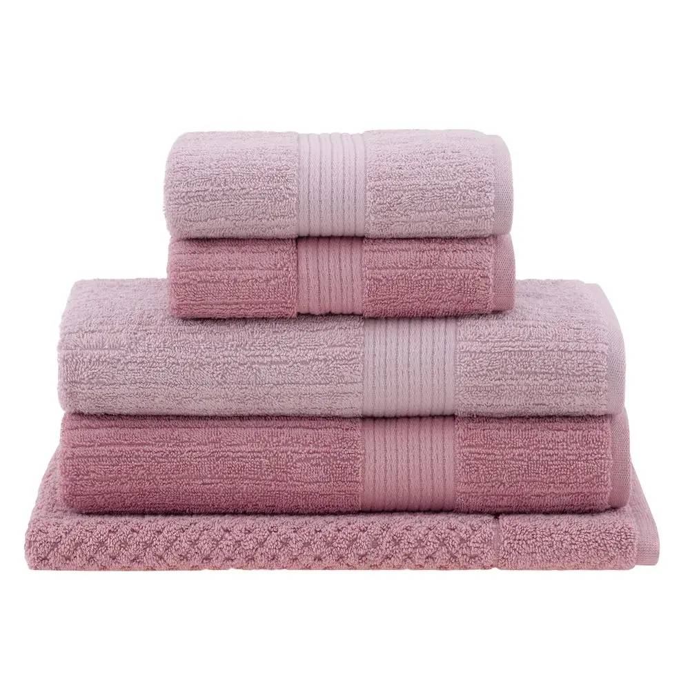Jogo de toalhas de banho Buddemeyer 5 peças fio penteado canelado gigante 100% algodão fibra longa, composto por: toalha de banho, toalha de rosto e toalha de piso. Toalhas pré-lavadas, pré encolhidas, alta absorção e felpa volumosa. A linha possui variedade de cores e tons, que leva para seu ambiente um tom moderno e alegre. Cores em degradê, forma um jogo para ele e para ela, cada um com sua toalha, assim fica fácil de não confundir. Garantia de absorção e durabilidade e um toque suave.